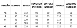 Guía de tallas en centímetros